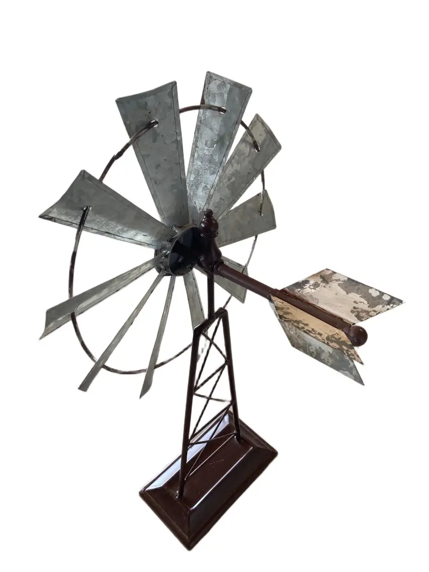 Breng beweging en karakter in je huis of tuin met deze decoratieve ijzeren windmolens. Uniek design met nostalgische charme!