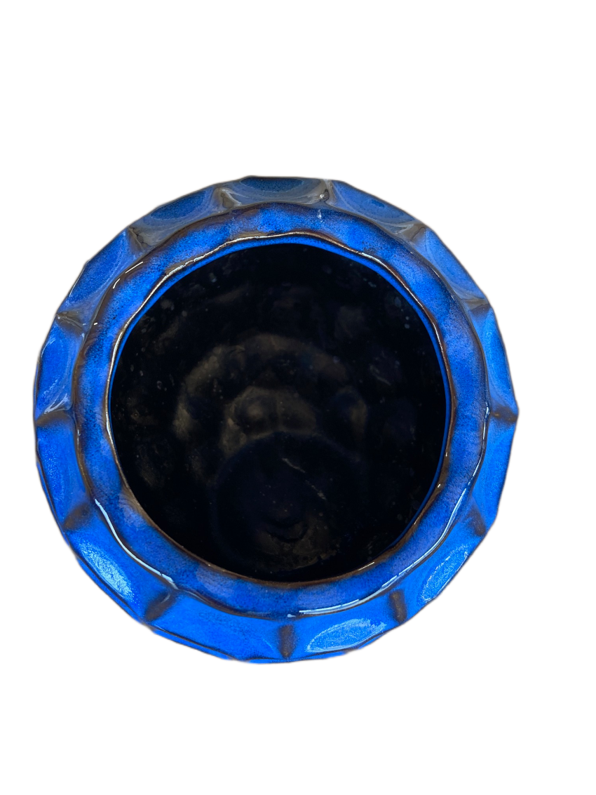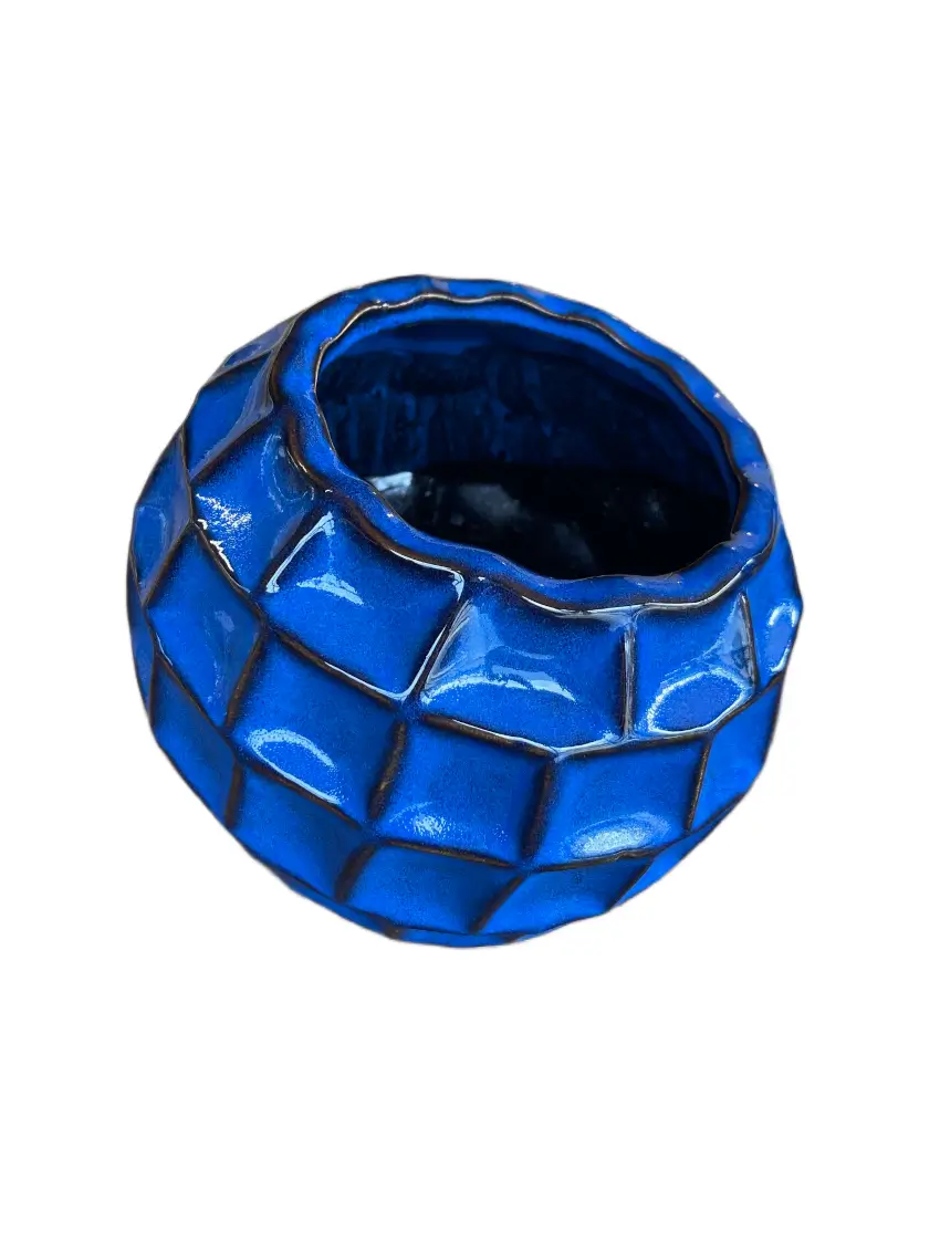 Breng een vleugje kunstzinnige elegantie in je interieur met deze unieke keramieken bloempot. De speelse schuine bovenrand geeft hem een dynamische uitstraling, terwijl de glanzende donkerblauwe kleur met subtiele zwarte accenten zorgt voor een luxe, diepe kleurtint die in elk interieur tot zijn recht komt.