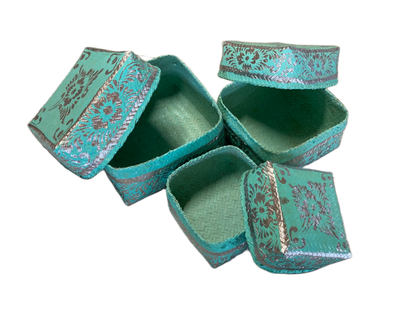 Breng een vleugje Bali in huis met dit betoverende setje van drie offermandjes, zorgvuldig met de hand vervaardigd uit duurzaam bamboe. Elk mandje past perfect in het volgende, waardoor ze eenvoudig op te bergen zijn.