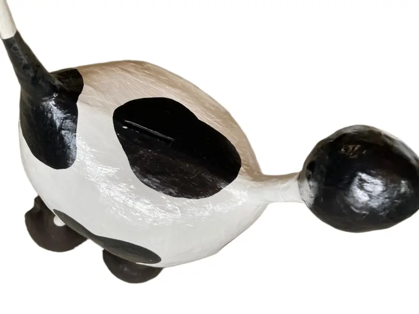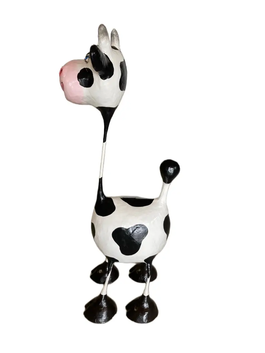 Deze vrolijke koe is niet zomaar een spaarpot, het is een klein kunstwerk met karakter. Met haar lange nek, grote kop en charmante uitstraling bewaart ze niet alleen je muntjes, maar bezorgd ze ook een glimlach op je gezicht!